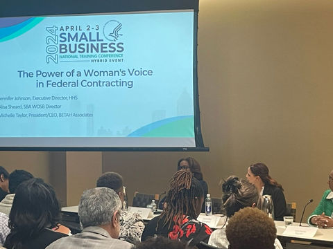 The 2024 HHS OSDBU Small Business National Training Conference was held April 2–3, 2024, at the Centers for Disease Control and Prevention’s Roybal Campus – Global Communications Center in Atlanta, GA, with virtual matchmaking sessions on April 4. This hybrid conference facilitated meaningful engagement between federal acquisition leaders and small businesses to promote innovation, economic inclusion, and increased small business participation in federal contracting.